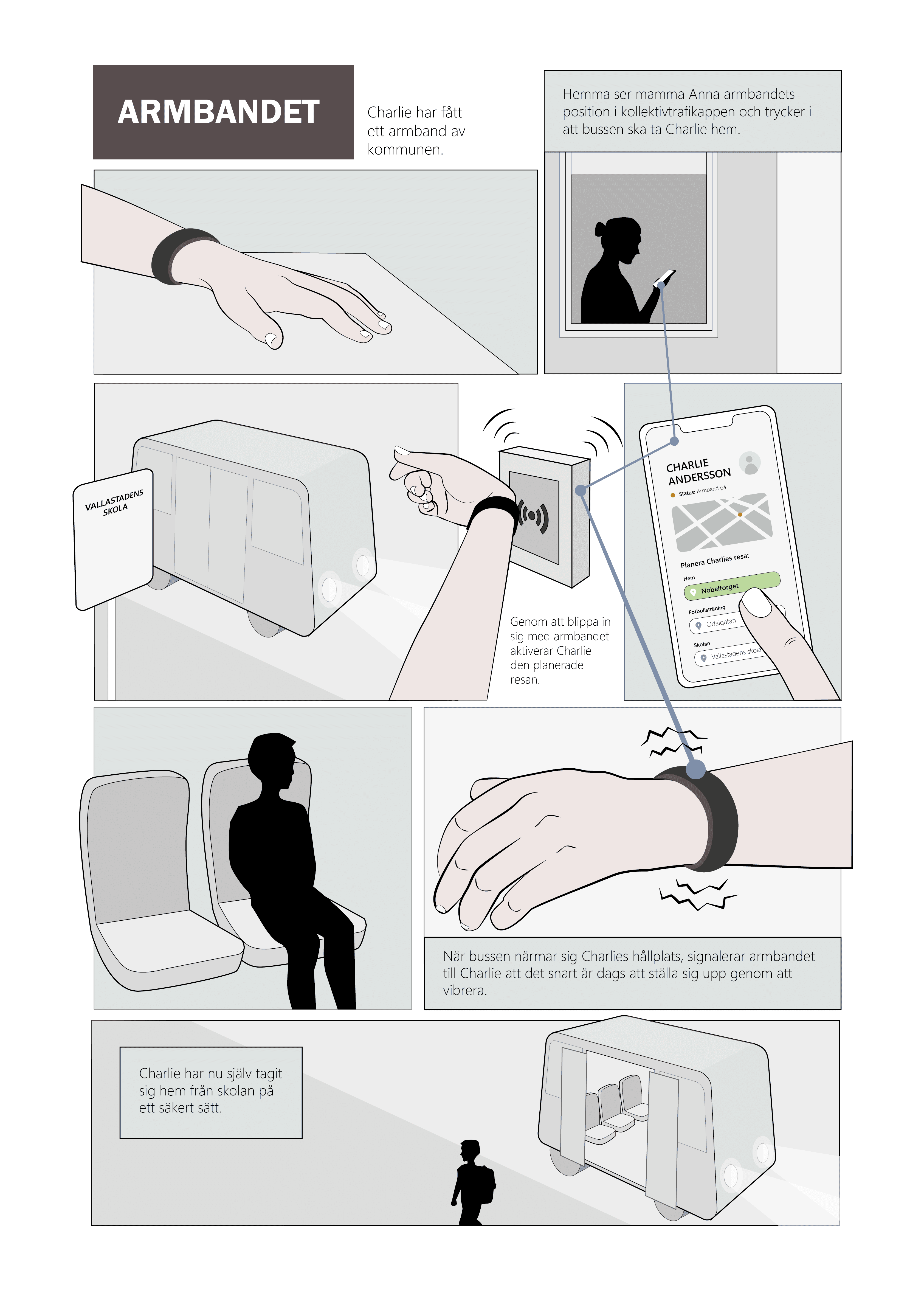BusBuddy resulted in a tested concept for how wearable support could help children with intellectual disabilities navigate autonomous public transport more independently. By combining pre-programmed journeys, visual guidance, and step-by-step states, the concept translated a complex journey into something more understandable, predictable, and manageable.