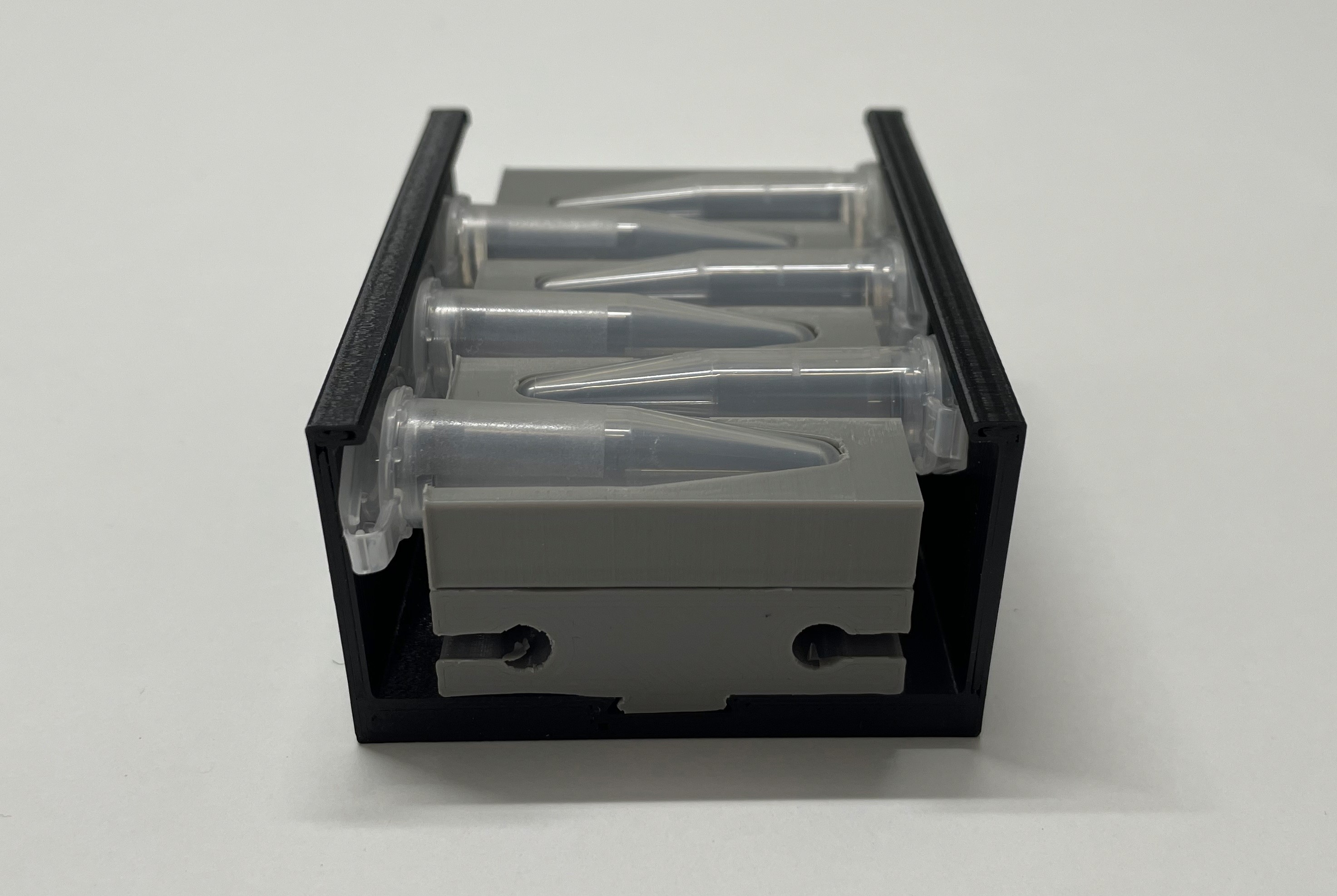 3D printed vial holder makes it possible to easily replace for different vial sizes, clean, and print new holders