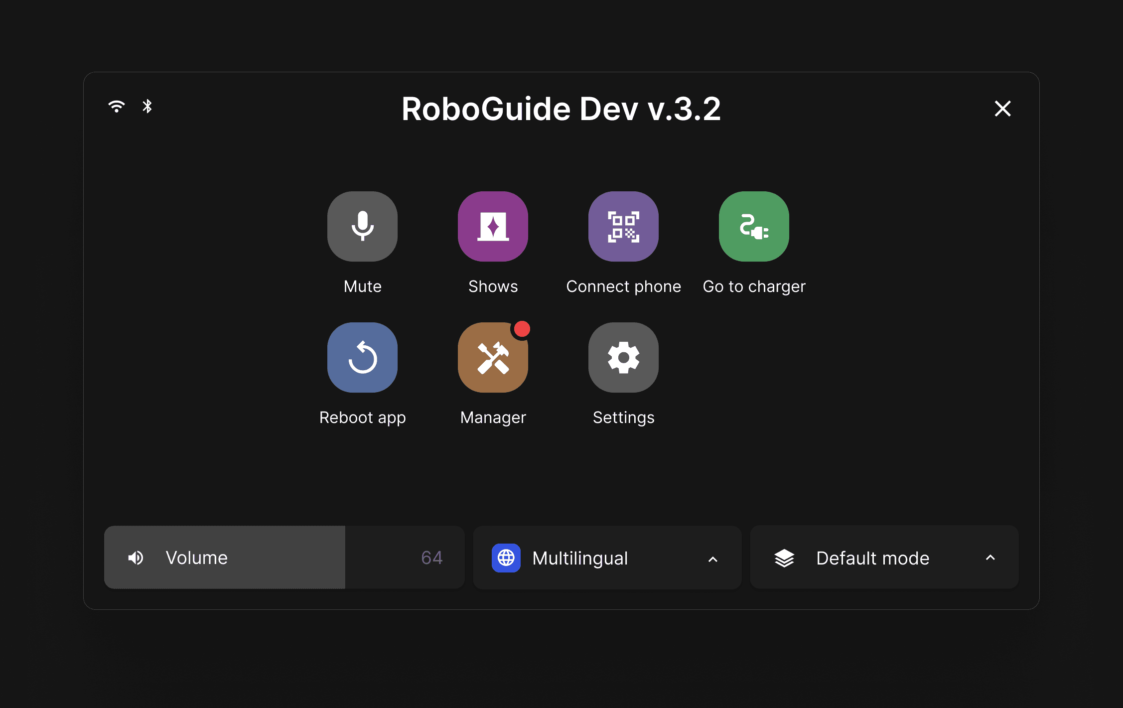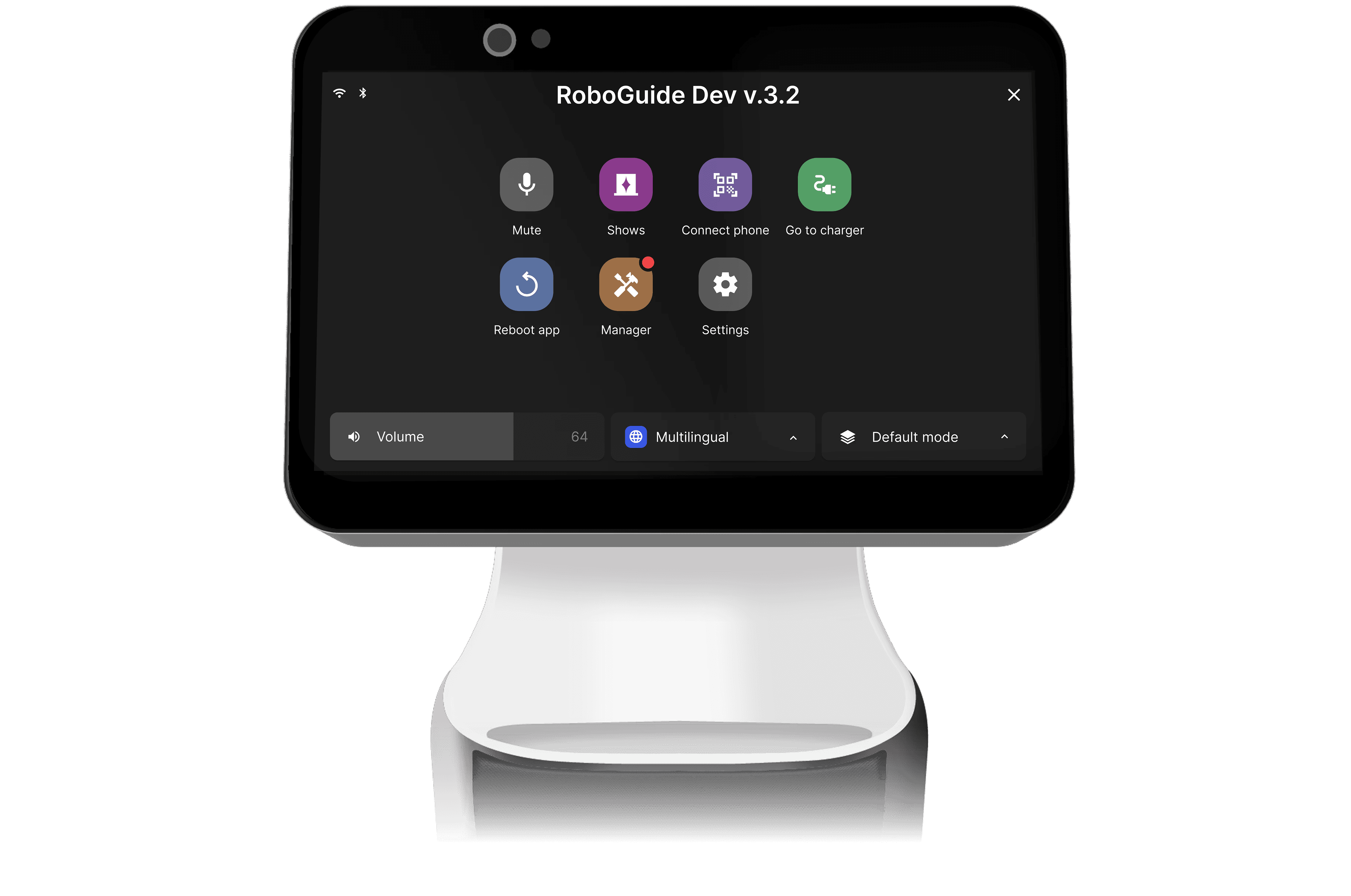 The on-robot manager interface is one of the first touchpoints I’m redesigning. The goal is to make quick operational tasks (such as changing language, shows, modes, and outward behavior) easier to understand and faster to perform in context.