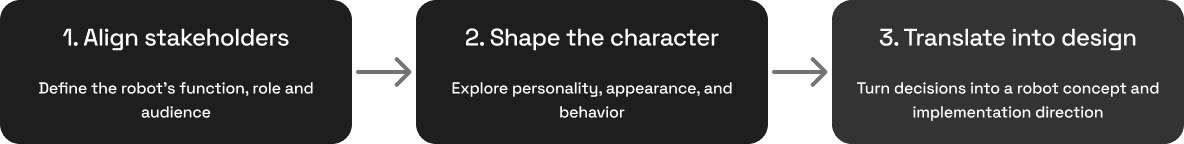 In our first deployments i designed a a workshop-based process that helped clients define who their robot should be, and helped our team turn those decisions into a coherent implementation.
